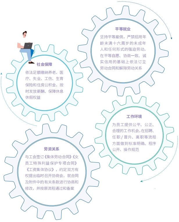 我们严酷遵守国家《劳动法》《劳动条约法》等相关执律例则、关于运营变换的最短通知期的相关划定,所有下属企业均签署《规范用工责任书》,从一律就业、社会包管、事情情形等规范用工治理并举行年度审核,确保用工治理正当合规,包管员工正当劳动权益。