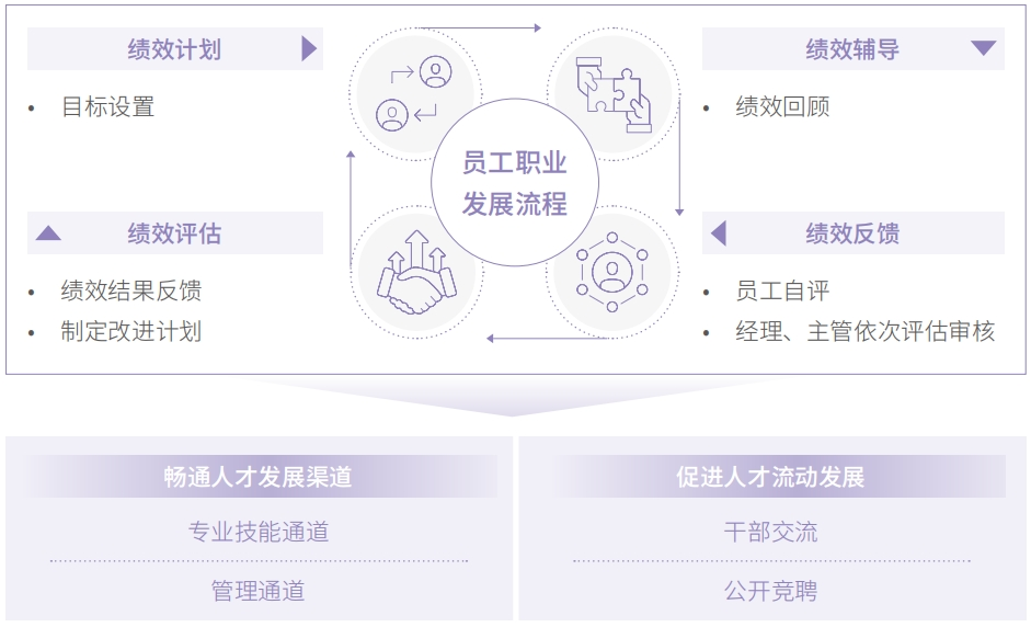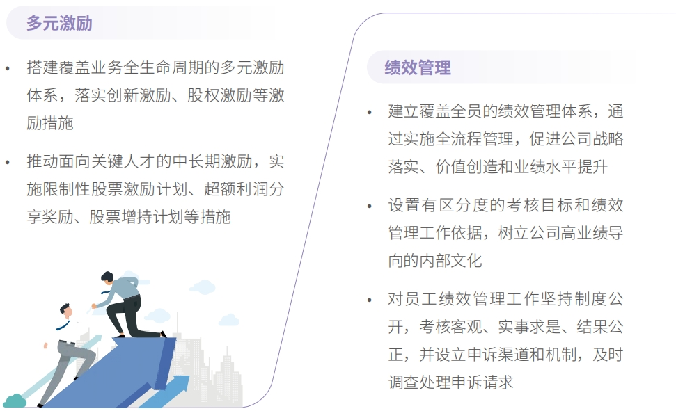 公司实验周全绩效治理,建设笼罩短、中、恒久的多元激励机制,将员工激励与员工 的责任、能力和孝顺直接细密挂钩,有用提升员工生长能力和创立业绩的起劲性。