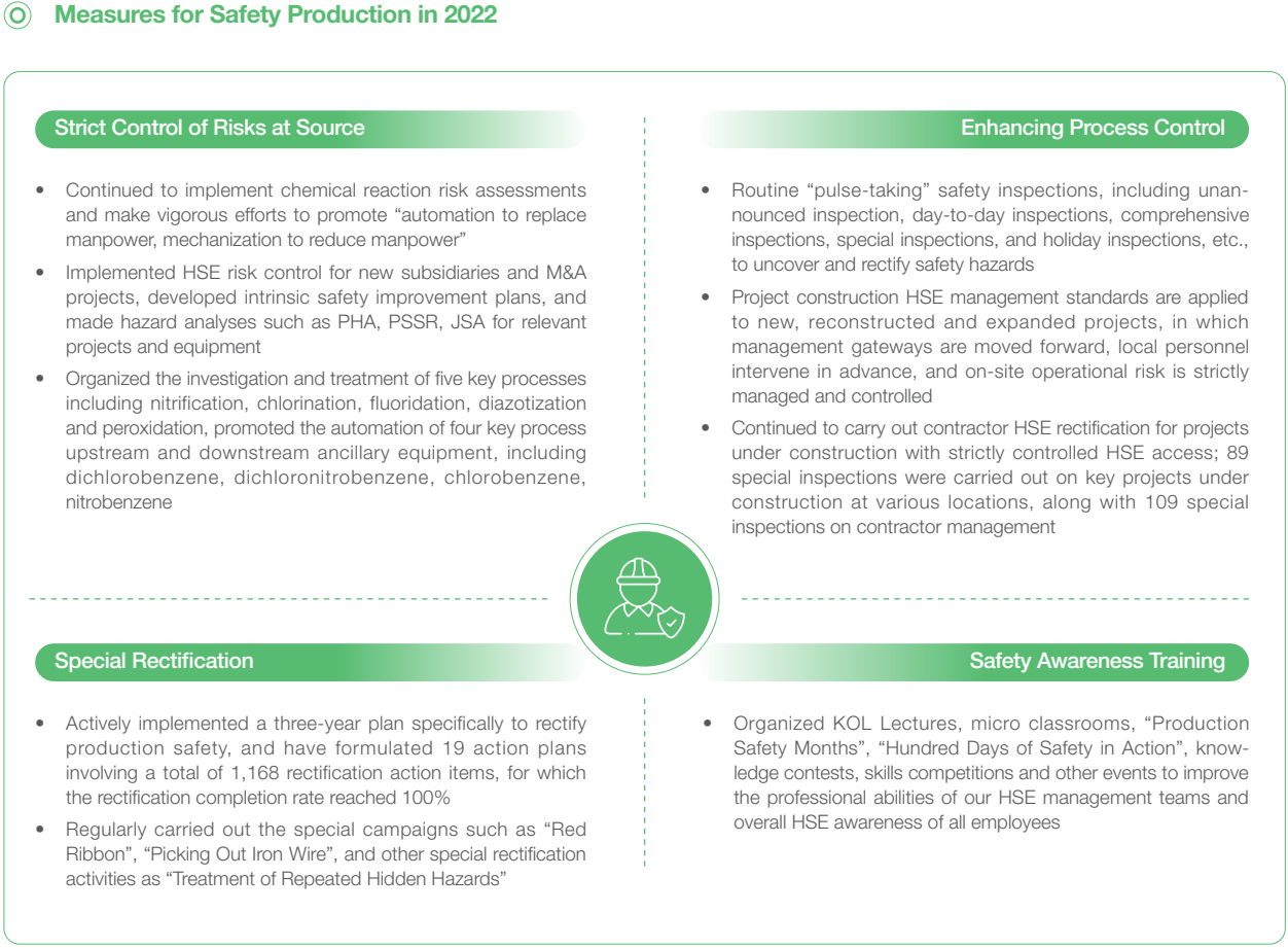 The company has formulated the policy of Management Measures for Safe Production, Work Permit Control Standards, fully implemented safety production deployment and safety production responsibility. With increased investment in intrinsic safety, we enhanced risk management and investigation of hidden hazards, established red lines for safe production, and resolutely prevented major safety accidents.