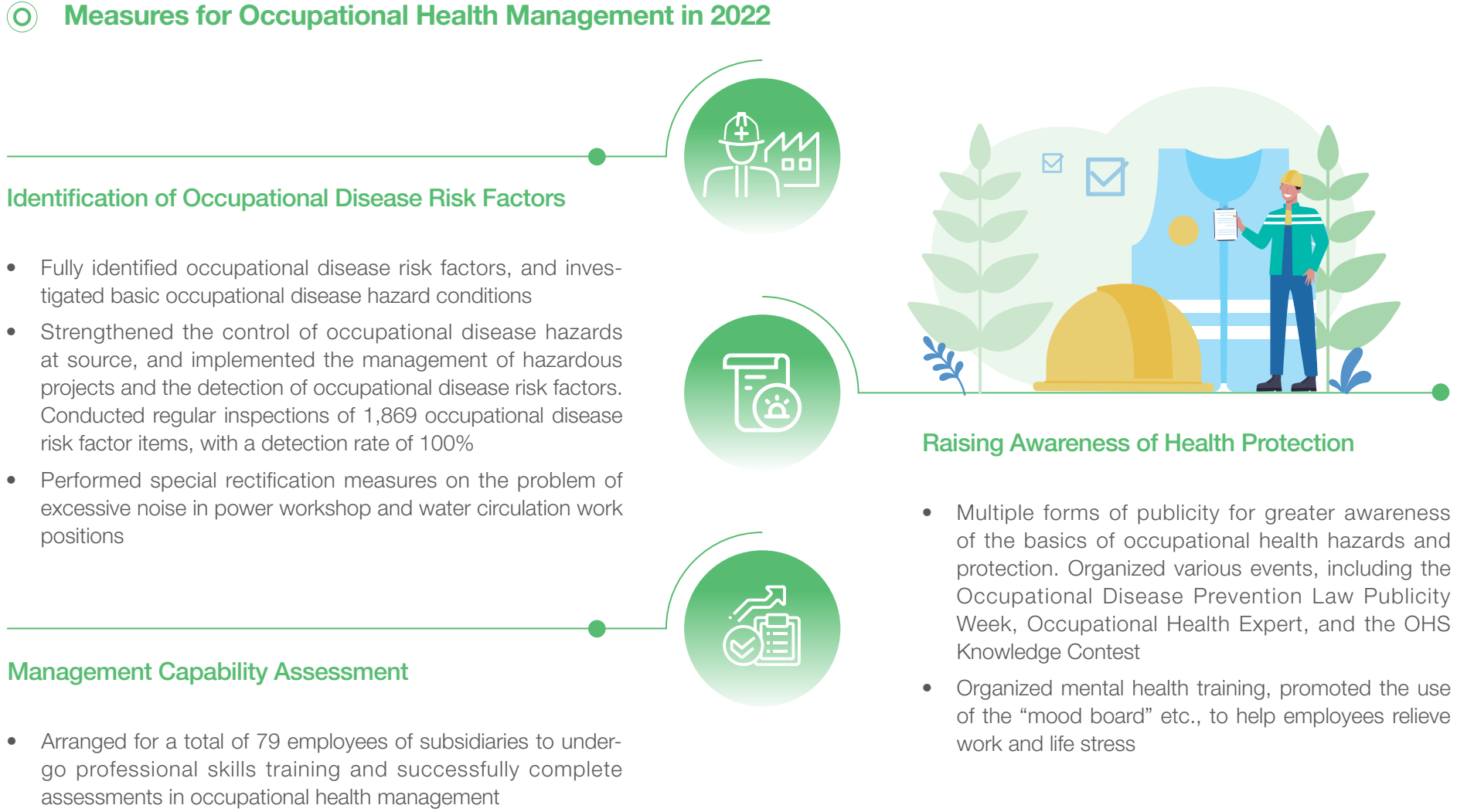 Sinochem International has formulated the Occupational Health Management Measures and worked continually to improve its occupational health and safety management system. The company performs annual identifications and assessments of occupational disease risk factors, promotes the remediation of occupational disease hazards, and organizes a range of events including “Occupational Health Talent” and “Creating Healthy Enterprise” in order to eliminate all potential occupational health risks, and improve the occupational health to a higher level.